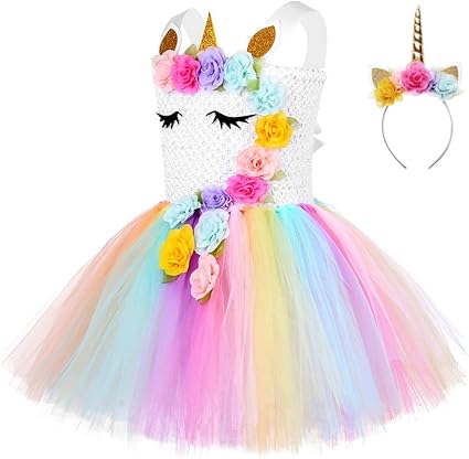 Amzbarley Robe De Licorne Fille Enfant Anniversaire Fete Princesse Habiller Bandeau Noel Robes Cosplay Robes Deguisement Amazon Fr Vetements Et Accessoires