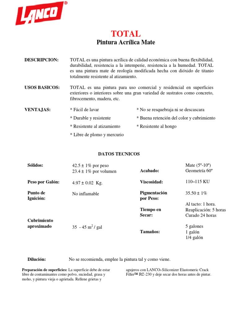 LANCO TOTAL es una pintura acrílica de... - Comercial de Pinturas y Selladores - Chinandega | Facebook